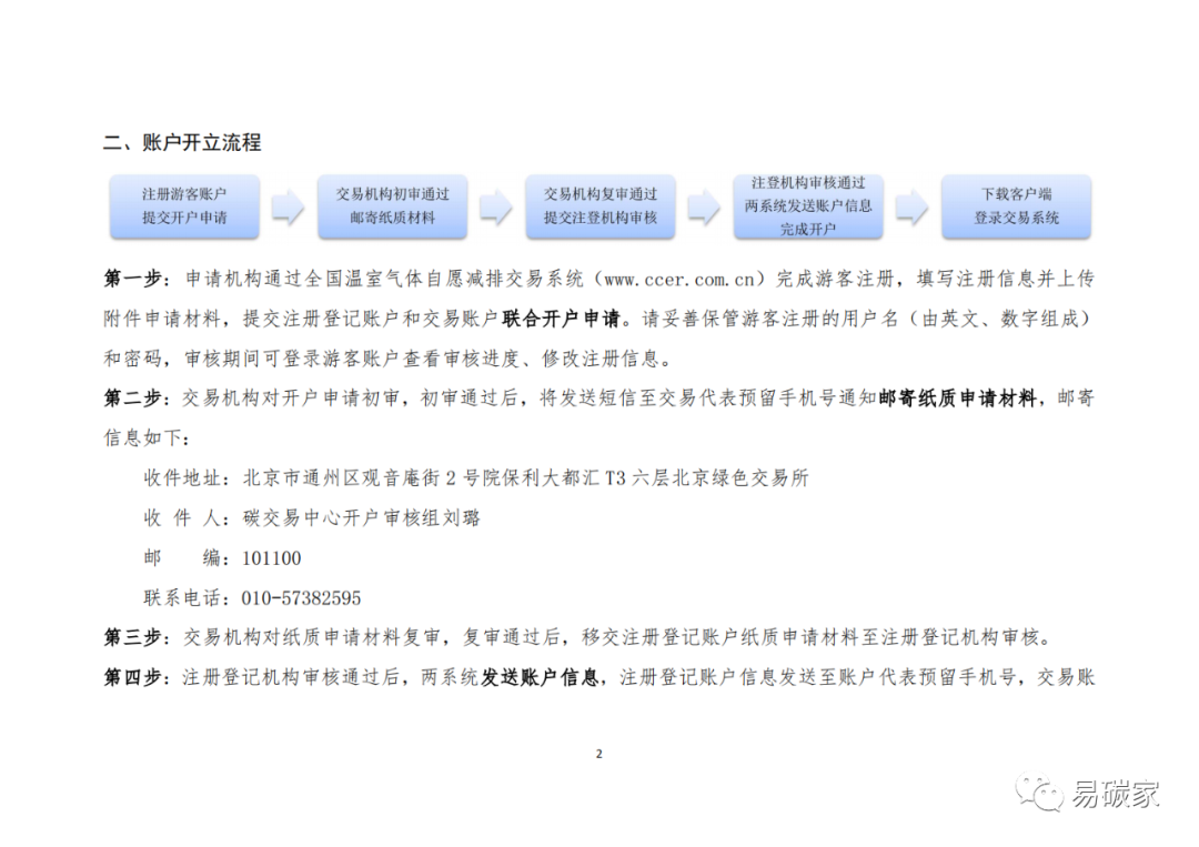 【摘要】:即日起可以向全国温室气体自愿减排交易系统管理机构(北京绿色交易所,以下简称“交易系统管理机构”)提交登记账户和交易账户开立申请材料